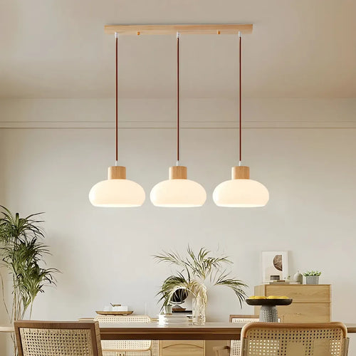 Classic Round Wooden Pendant Light with Shade for Home -
